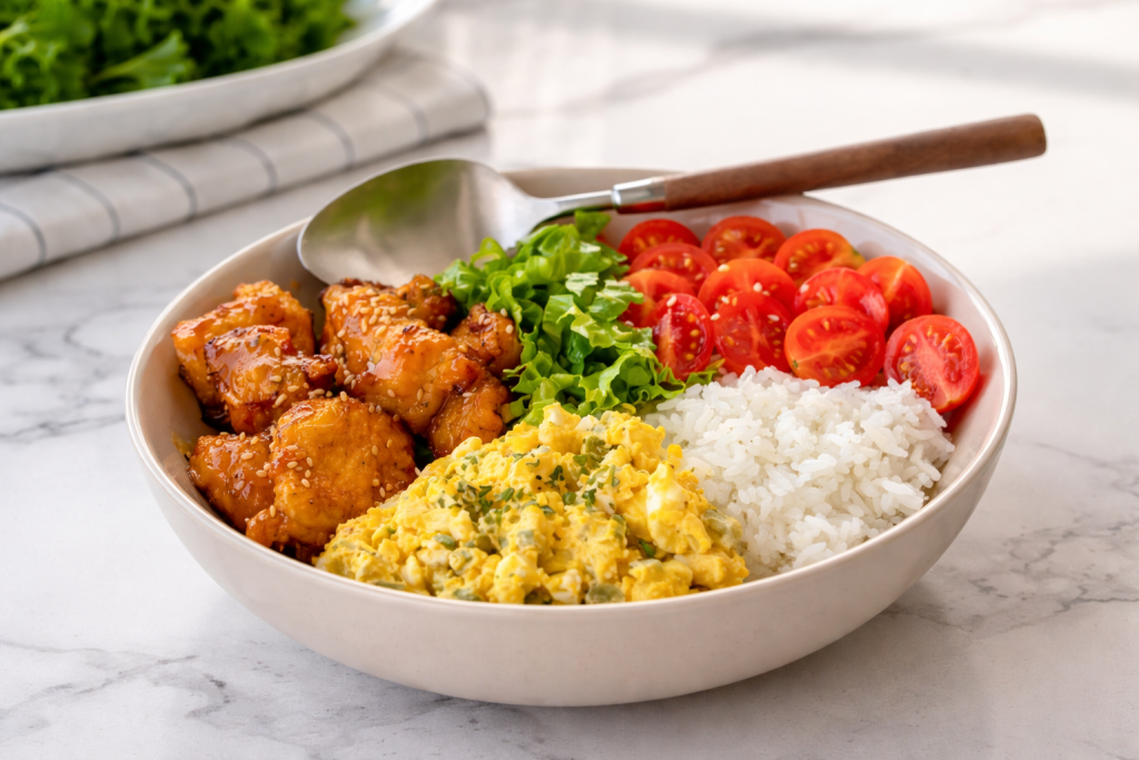 This Sesame Chicken Rice Bowl is a balanced, comforting meal built around bold flavors and fresh textures. Crispy, golden chicken