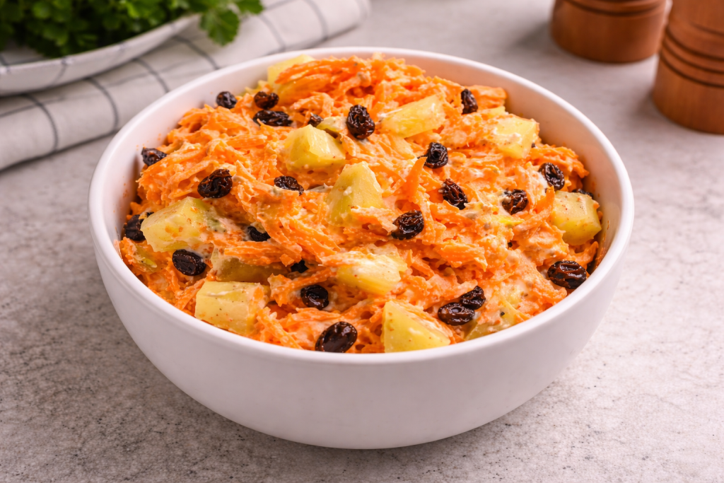 Creamy Carrot Pineapple Raisin Salad is a timeless dish that blends freshness, sweetness, and texture in every bite. Popular in home kitchens and classic delis alike, this salad balances crisp grated carrots with juicy pineapple chunks and plump raisins, all brought together by a lightly sweetened creamy dressing. It works beautifully as a side dish, light dessert, or picnic staple. Simple to prepare yet visually vibrant, this salad is proof that a handful of humble ingredients can create something truly comforting and satisfying.
